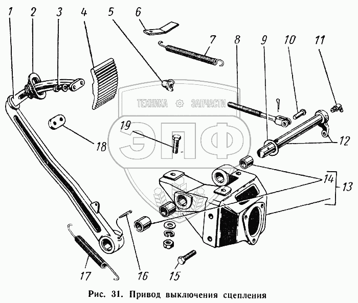 Каталог запасных частей к технике: ГАЗ-52-01. Привод выключения сцепления