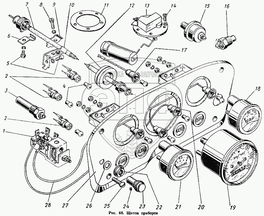 Каталог запасных частей к технике: ГАЗ-52-01. Щиток приборов