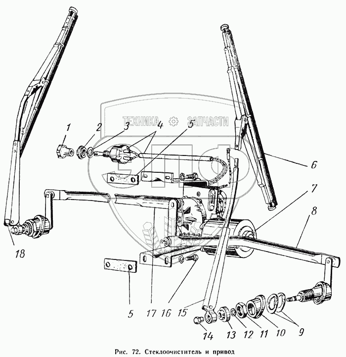Каталог запасных частей к технике: ГАЗ-52-01. Стеклоочиститель и привод