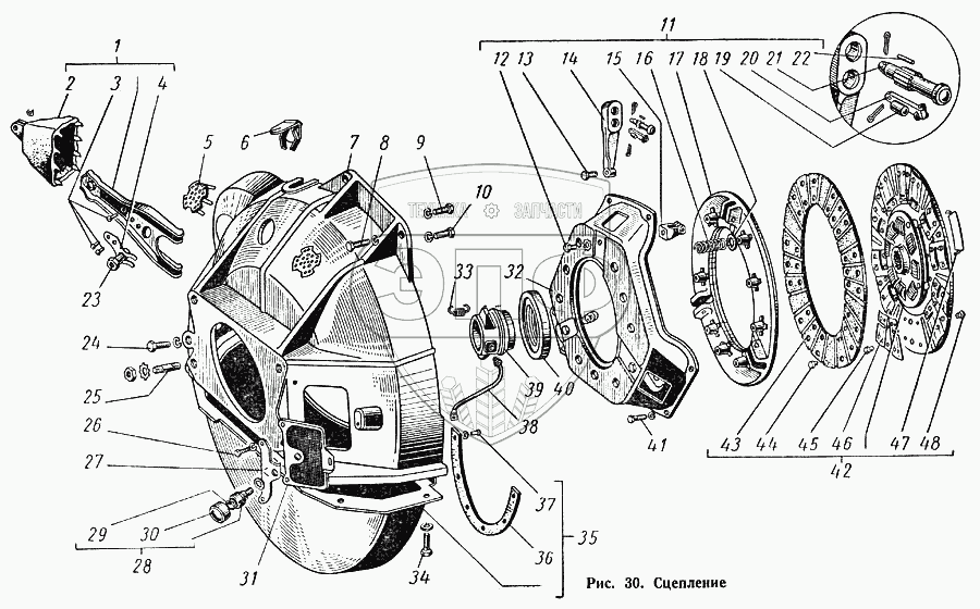 Каталог запасных частей к технике: ГАЗ-52-01. Сцепление