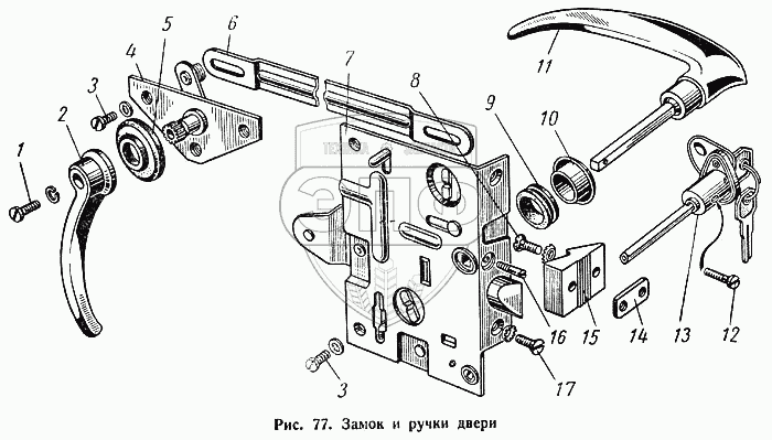 Каталог запасных частей к технике: ГАЗ-52-01. Замок и ручки двери