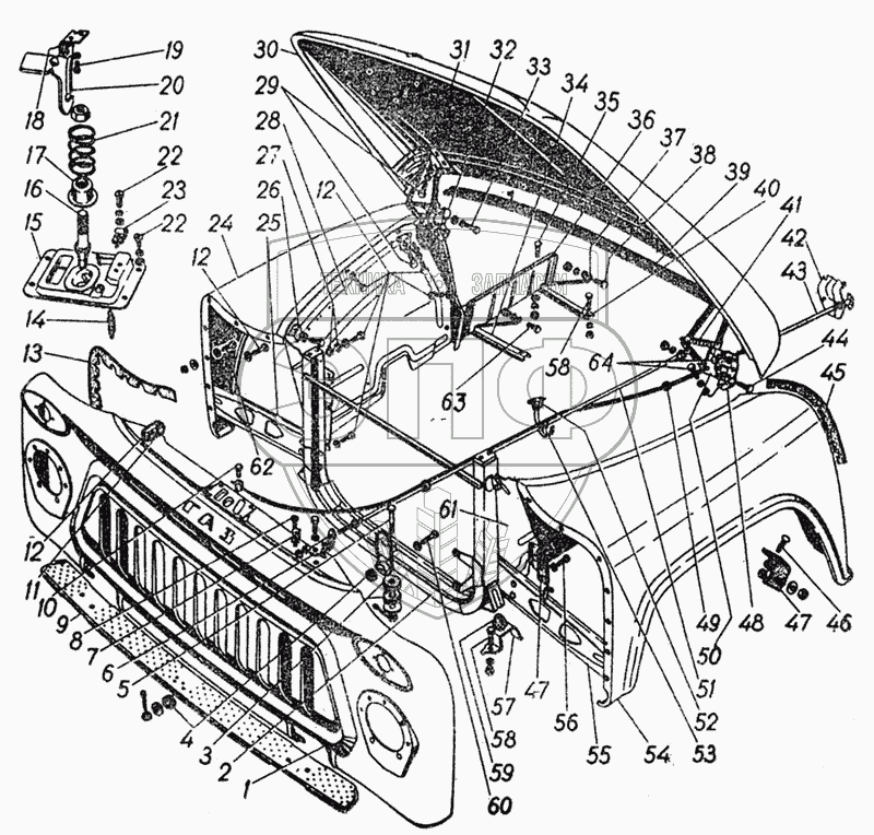 | 20 | 52-8406100 | Крючок-предохранитель капота в сборе | Нет на складе | |