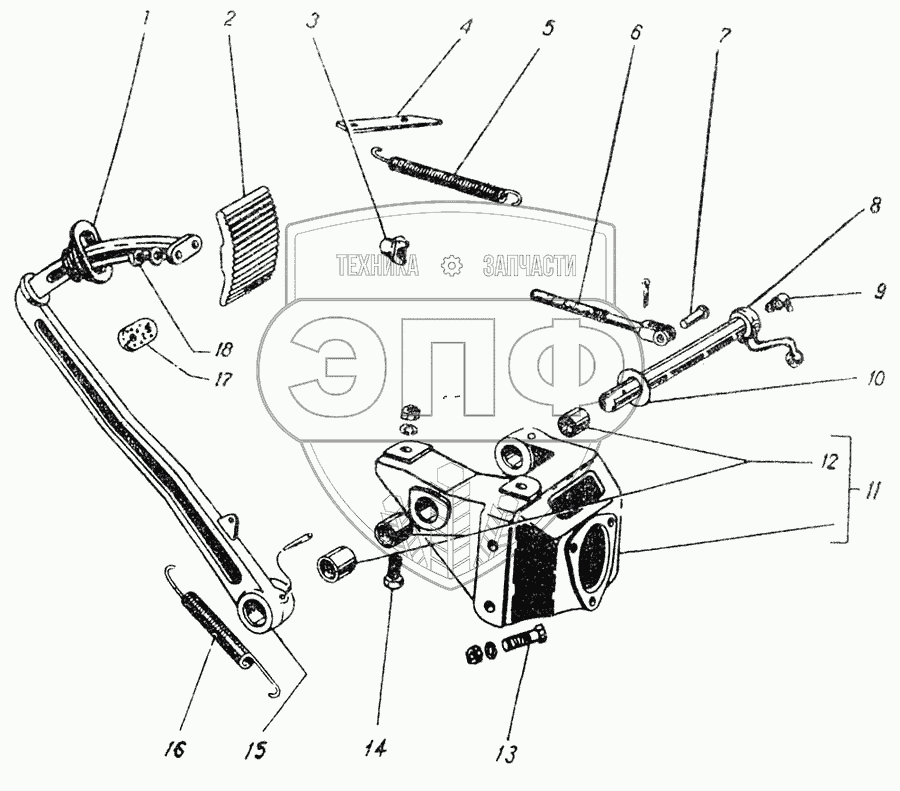 | 8 | 53-1602052-01 | Валик педалей сцепления и тормоза в сборе | Нет на складе | |