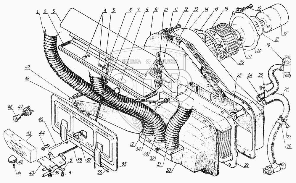 Каталог запасных частей к технике: ГАЗ-5312. Вентиляция и отопление