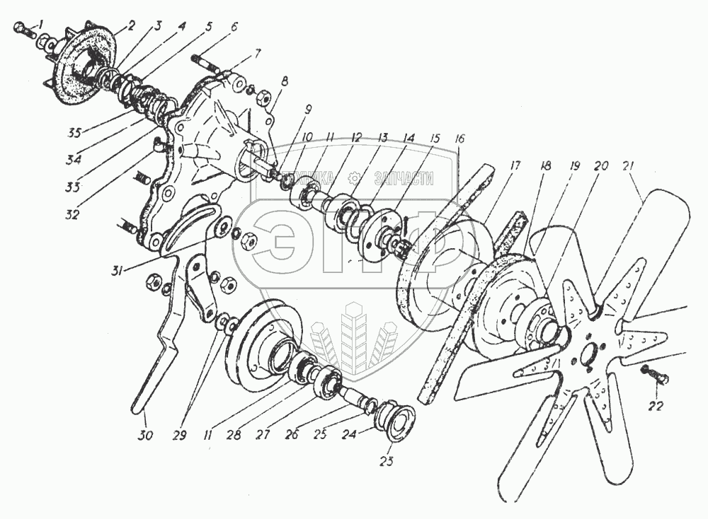 Каталог запасных частей к технике: ГАЗ-5312. Водяной насос и вентилятор