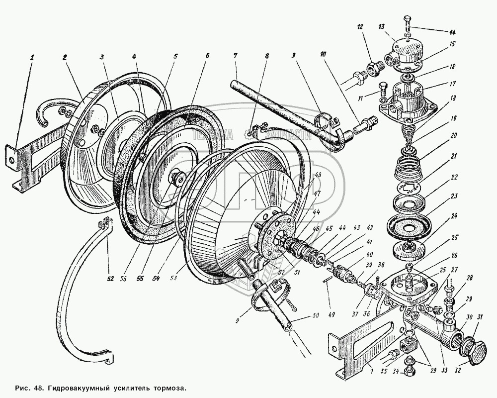 Каталог запасных частей к технике: ГАЗ-53 А. Гидровакуумный усилитель тормоза