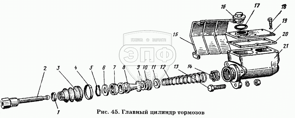 Каталог запасных частей к технике: ГАЗ-53 А. Главный цилиндр тормозов