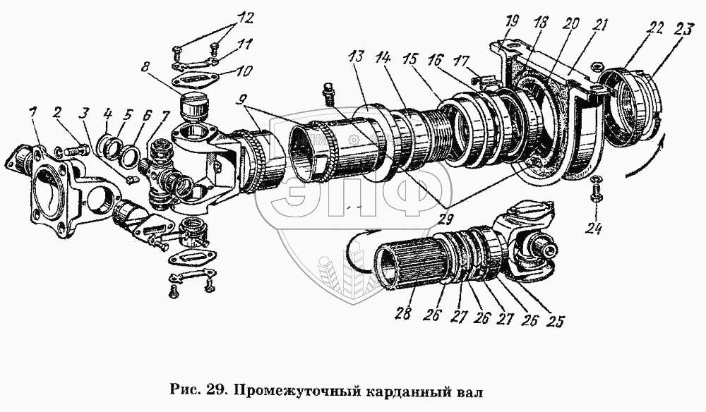 Каталог запасных частей к технике: ГАЗ-53 А. Промежуточный карданный вал