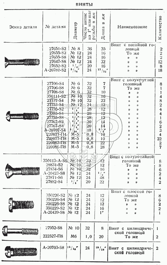 Каталог запасных частей к технике: ГАЗ-ММ "Полуторка". Винты