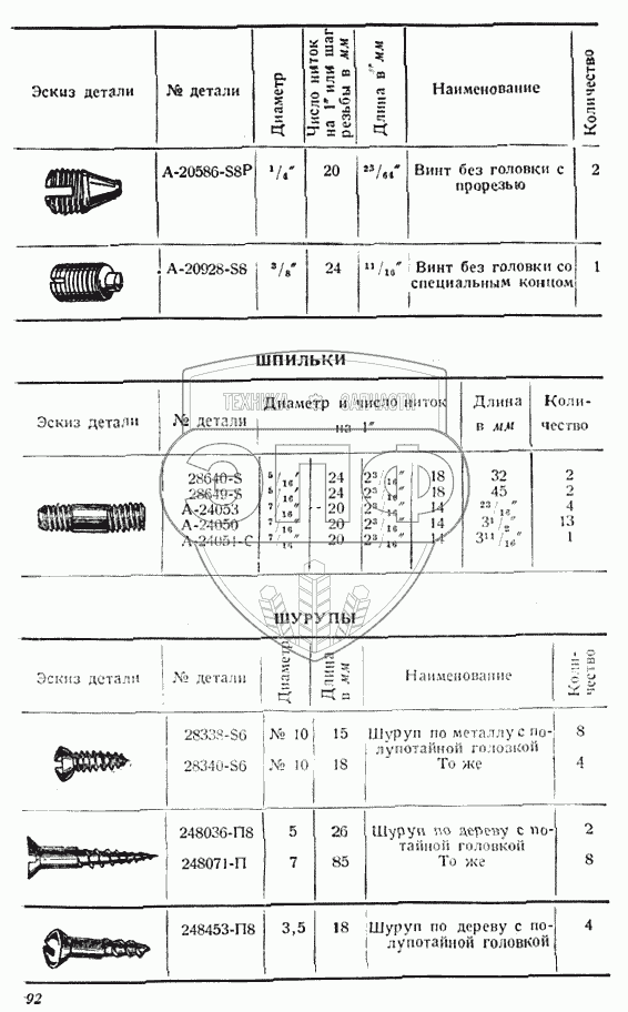 Каталог запасных частей к технике: ГАЗ-ММ "Полуторка". Винты, шпильки, шурупы