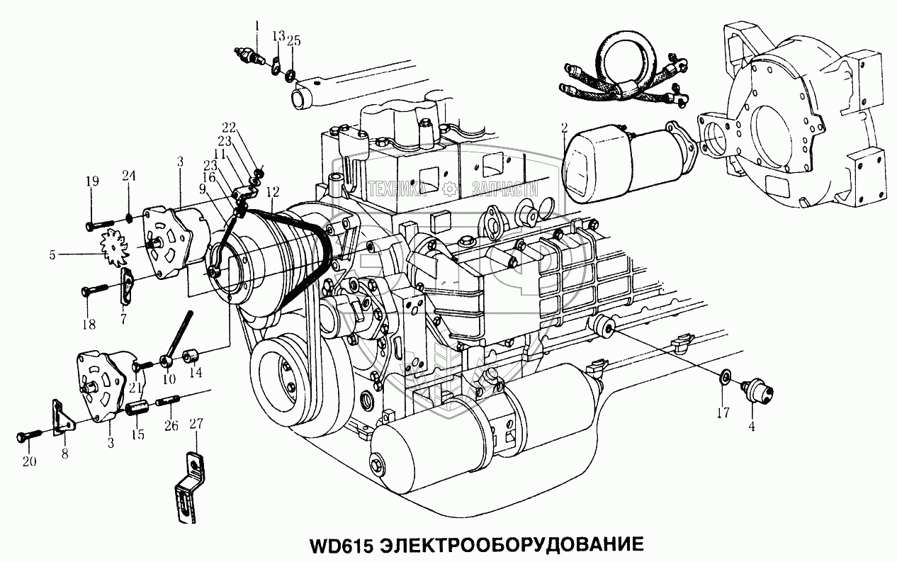 Каталог запасных частей к технике: HOWO Howo. Электрооборудование двигателя WD615