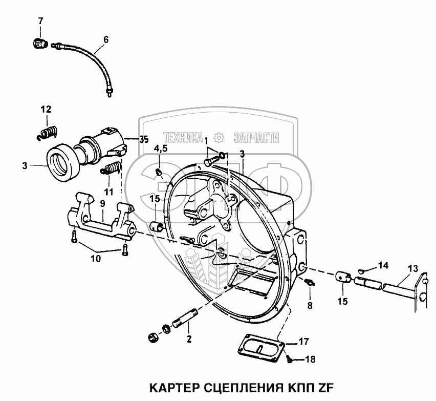 Каталог запасных частей к технике: HOWO Howo. Картер сцепления КПП ZF