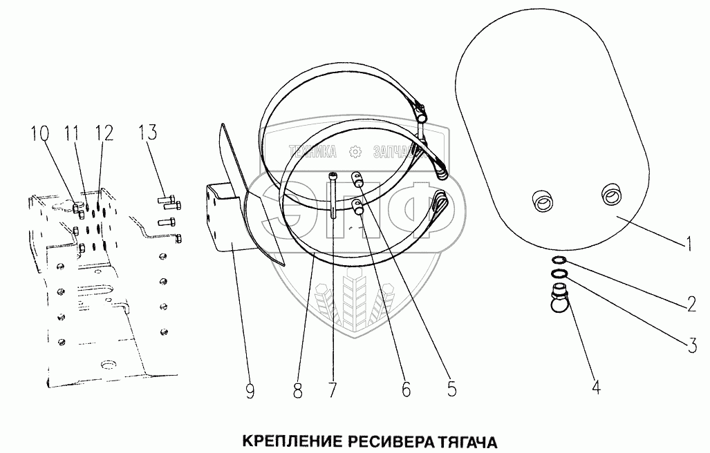 Каталог запасных частей к технике: HOWO Howo. Крепление ресивера тягача