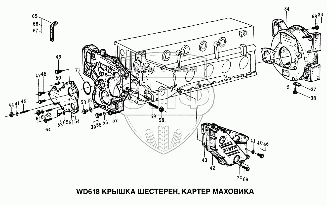 Каталог запасных частей к технике: HOWO Howo. Крышка шестерен, картер маховика