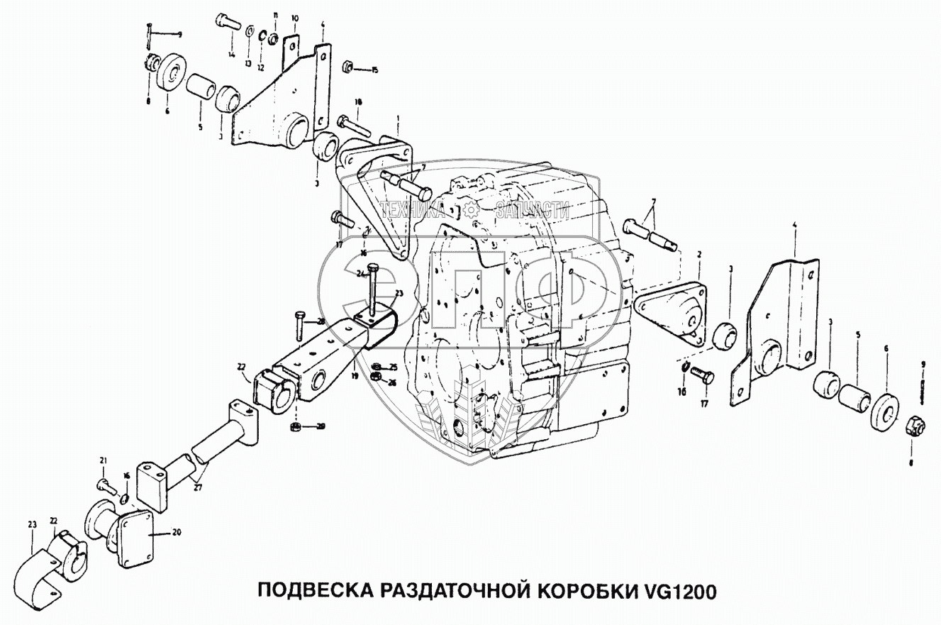 Каталог запасных частей к технике: HOWO Howo. Подвеска раздаточной коробки VG1200