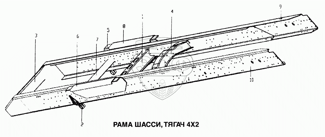 Каталог запасных частей к технике: HOWO Howo. Рама шасси, тягач 4x2