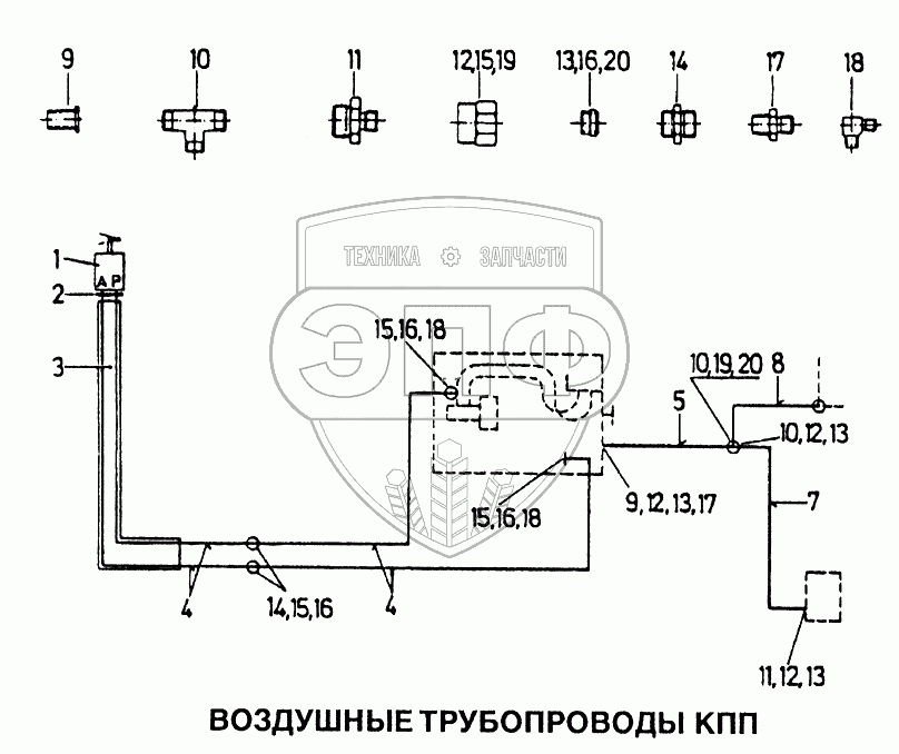 Каталог запасных частей к технике: HOWO Howo. Воздушные трубопроводы КПП
