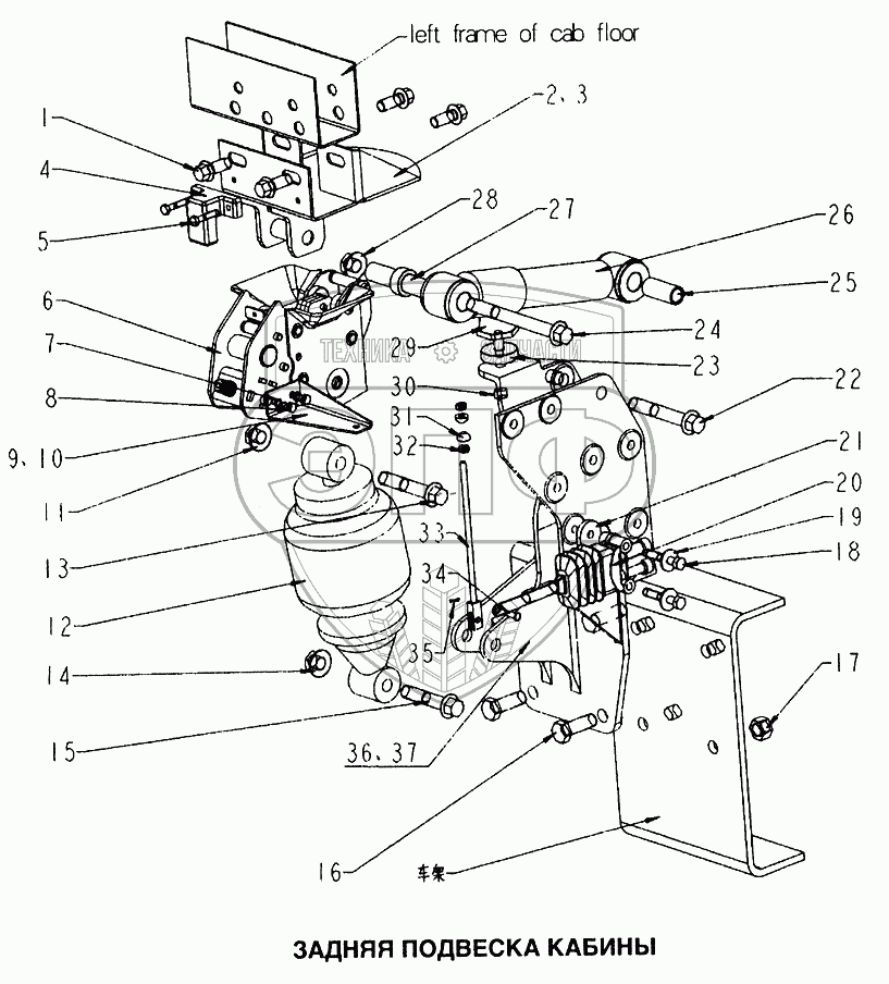 Каталог запасных частей к технике: HOWO Howo. Задняя подвеска кабины