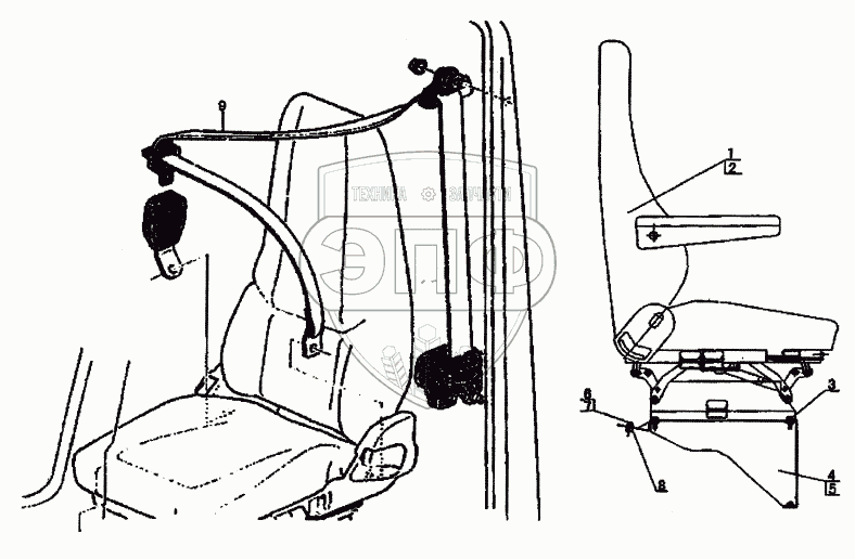 Каталог запасных частей к технике: HOWO Howo cnhtc-huaxin. Сиденье и ремень безопасности