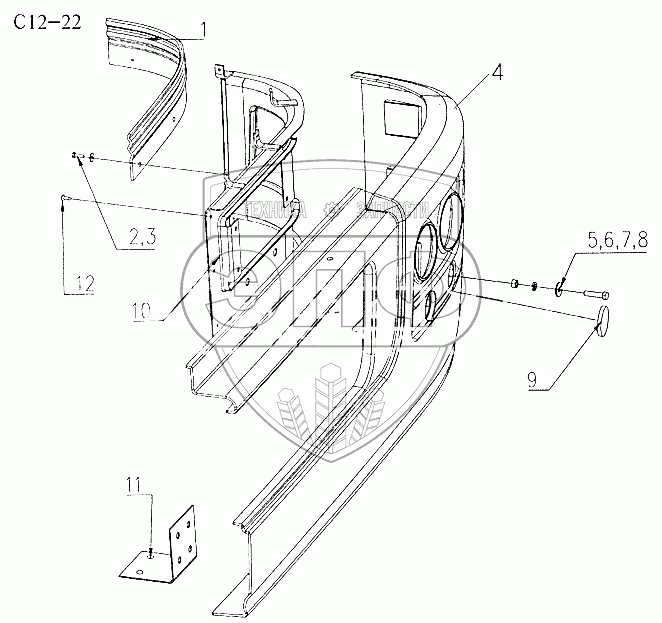Каталог запасных частей к технике: HOWO Sinotruck (полный). BUMPER (C12-22)