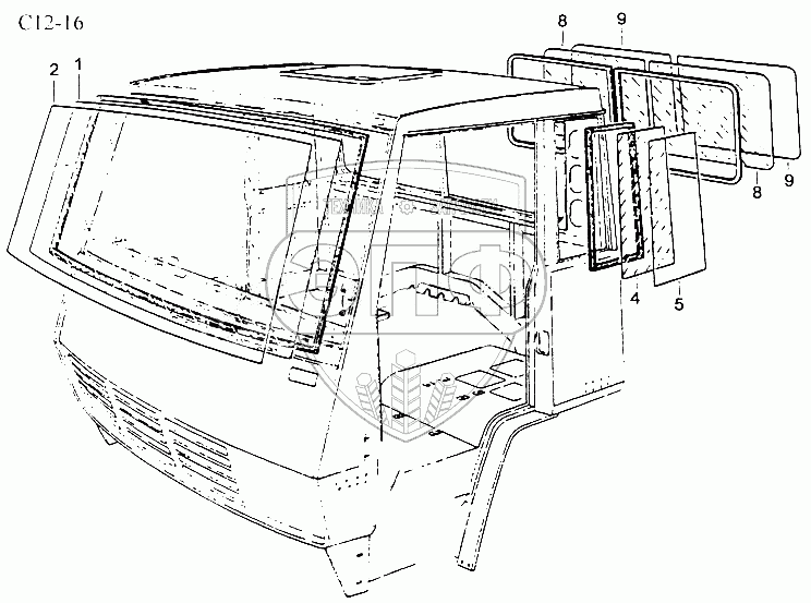 Каталог запасных частей к технике: HOWO Sinotruck (полный). WINDOW GLASS (C12-16)