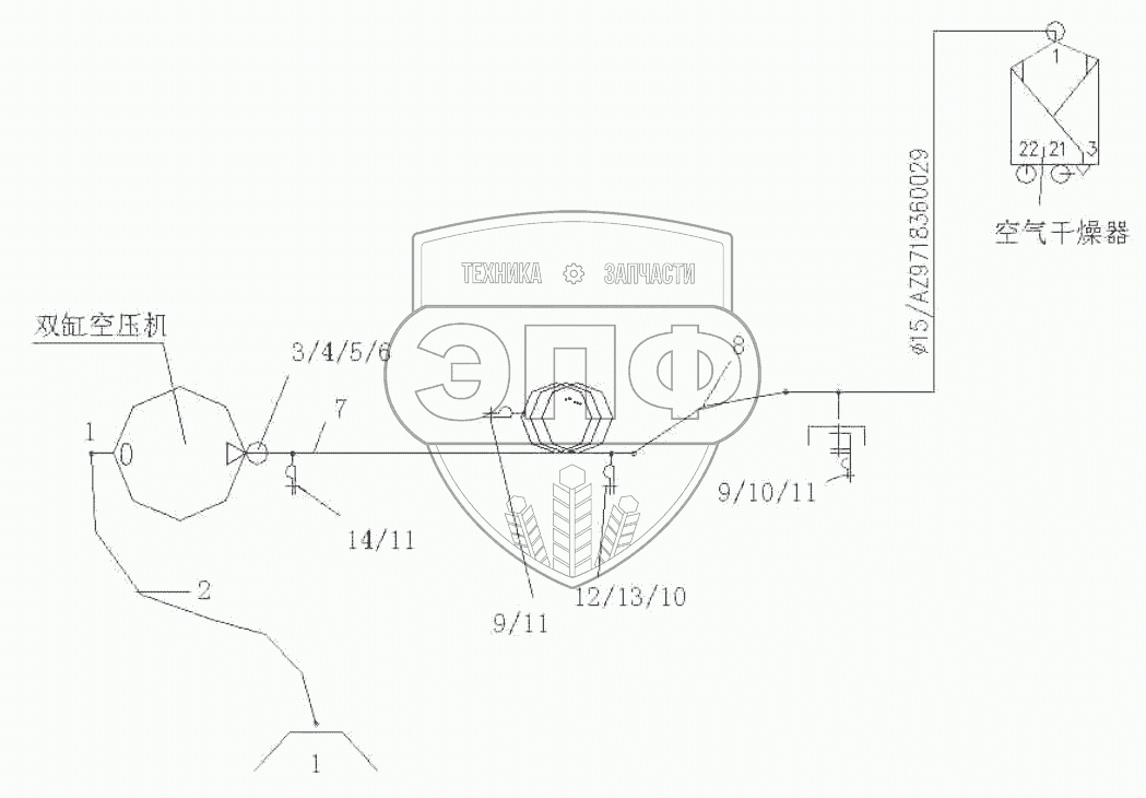 | 7 | AZ9718360206 | Air pipe-compressor to hose | Нет на складе | |