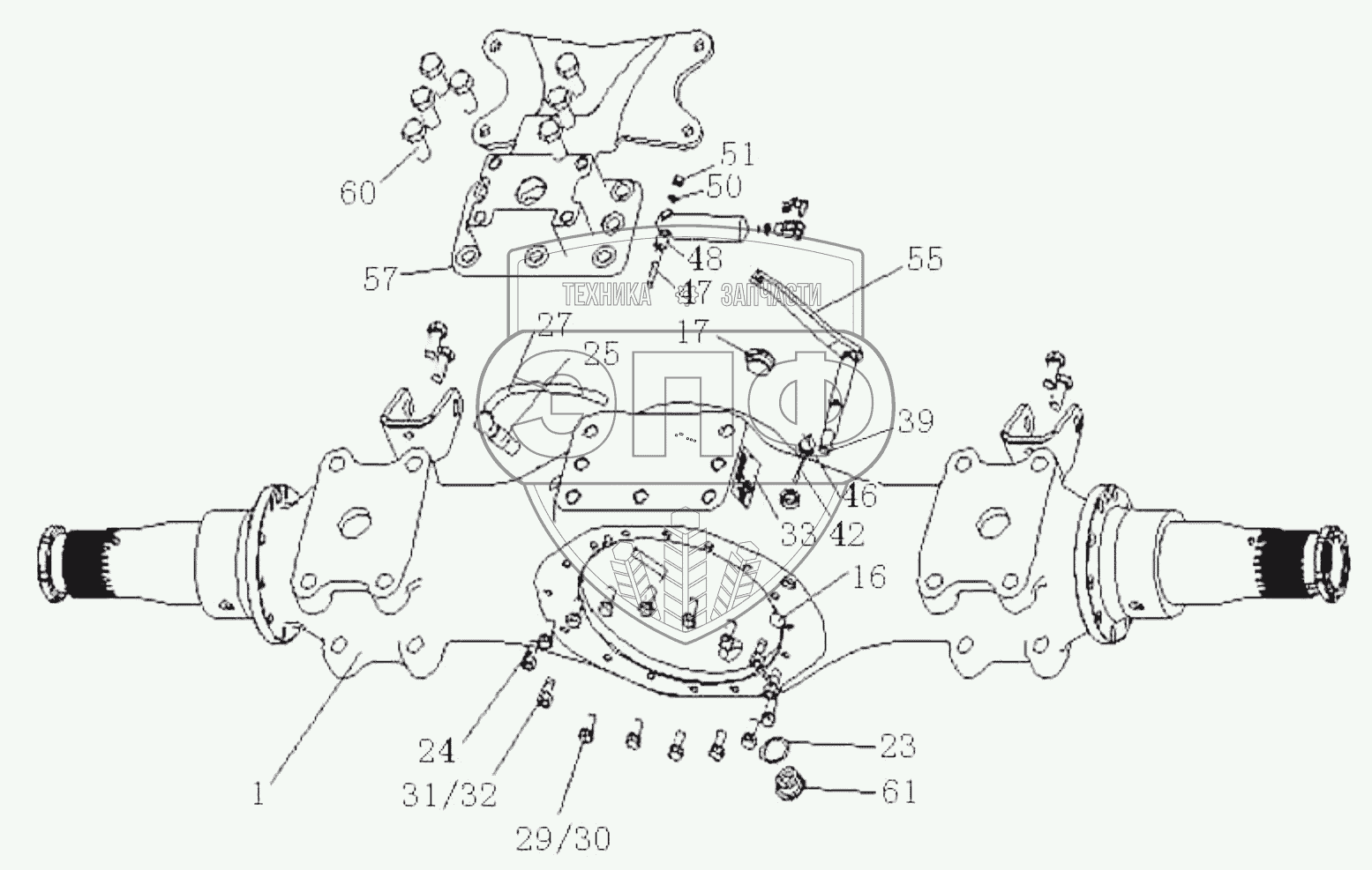 Каталог запасных частей к технике: HOWO ZZ3327N3647C-N2WA. Rear Axle Housing