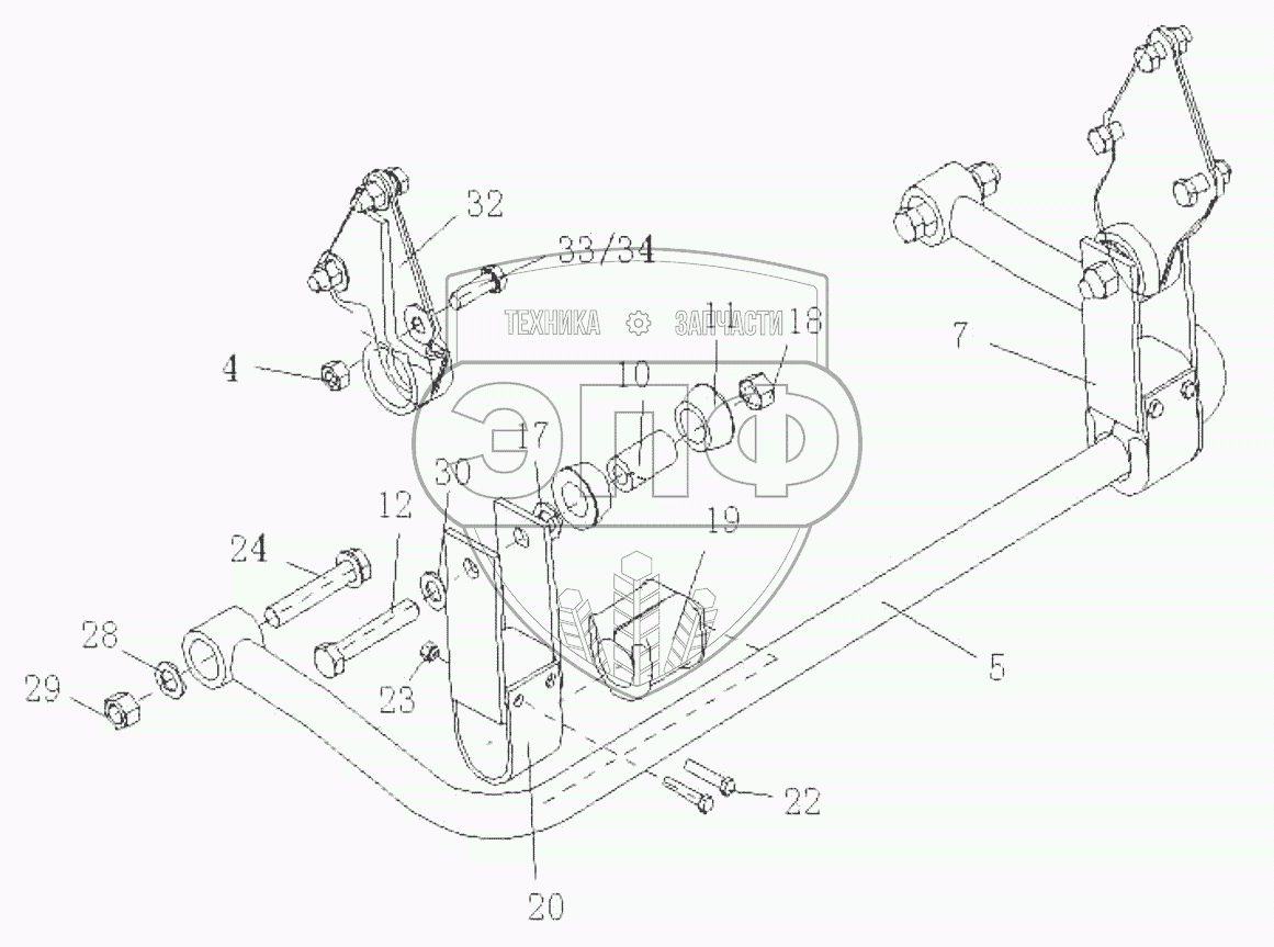 Каталог запасных частей к технике: HOWO ZZ3327N3647C-N2WA. Rear Stabilizer