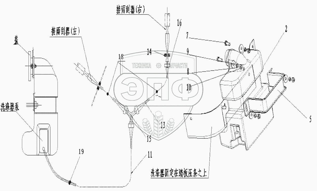 Каталог запасных частей к технике: HOWO ZZ3327N3647C-N2WA. The cab window scrubber
