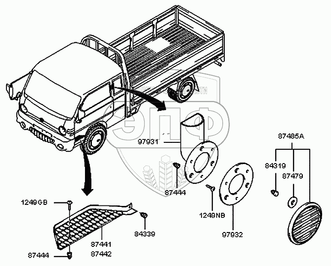 Каталог запасных частей к технике: Hyundai H100 Porter. Боковая отделка и подножка