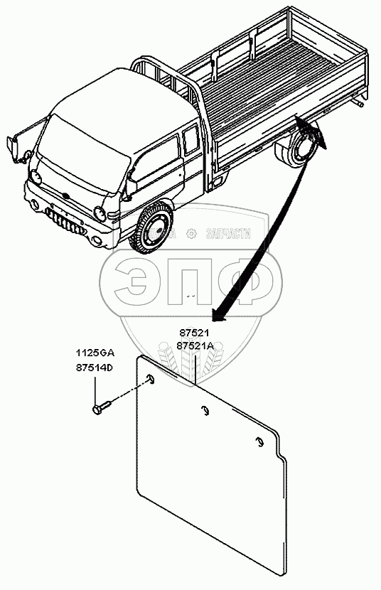 Каталог запасных частей к технике: Hyundai H100 Porter. Брызговик
