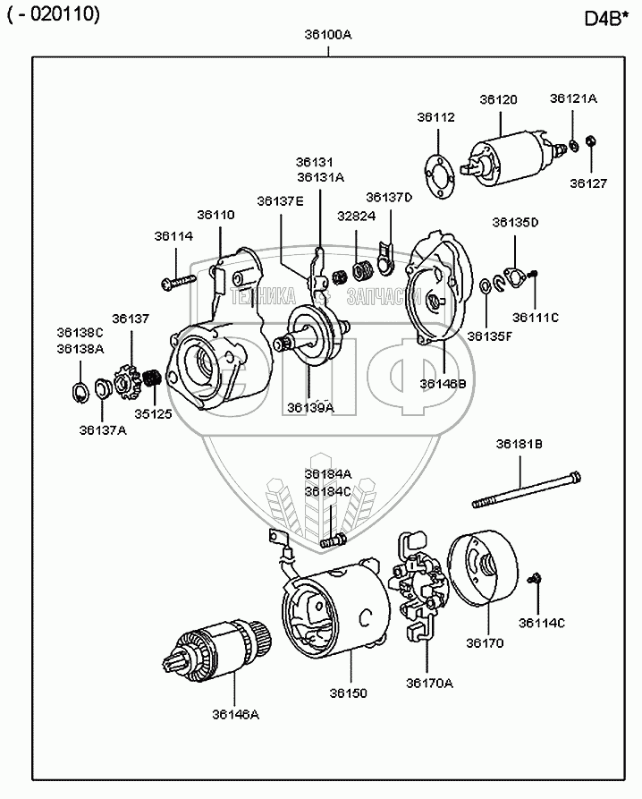 | 36100A | 36100-42011 | Стартер в сборе, 2.0kw | Нет на складе | |
