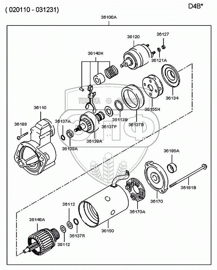 Каталог запасных частей к технике: Hyundai H100 Porter. Cтартер