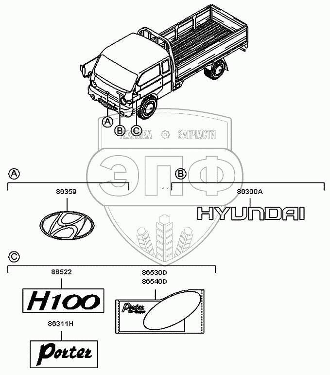 Каталог запасных частей к технике: Hyundai H100 Porter. Эмблема