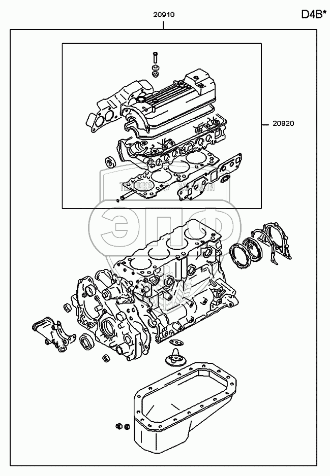 Каталог запасных частей к технике: Hyundai H100 Porter. Набор прокладок двигателя