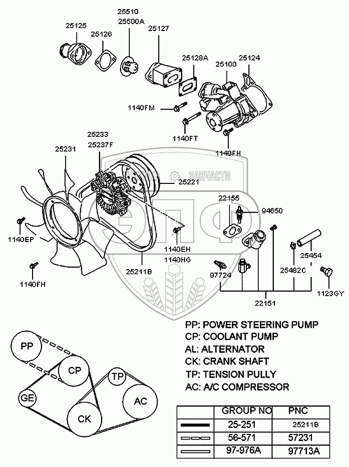 Каталог запасных частей к технике: Hyundai H100 Porter. Насос охлаждающей жидкости