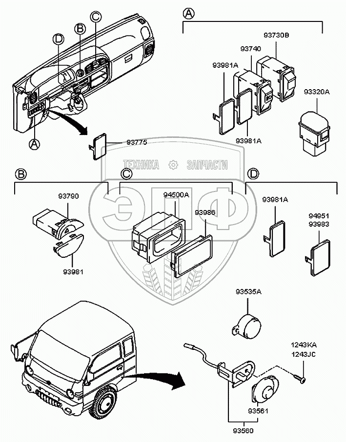 | 93560 | 93560-21001 | Выключатель замка двери | Нет на складе | |