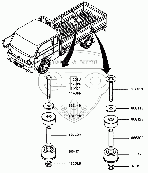 Каталог запасных частей к технике: Hyundai H100 Porter. Подвеска кабины