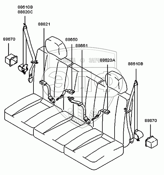 | 88610B | 88801-4B010 | Ремень безопасности в сборе | Нет на складе | |