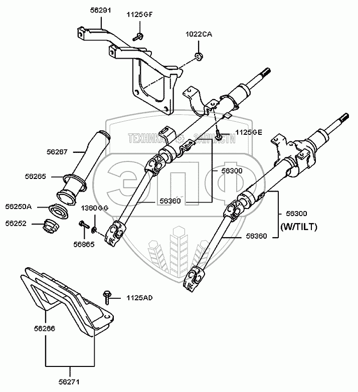 Каталог запасных частей к технике: Hyundai H100 Porter. Рулевая колонка и вал