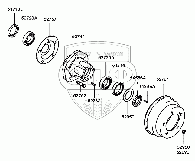 Каталог запасных частей к технике: Hyundai H100 Porter. Ступица заднего колеса