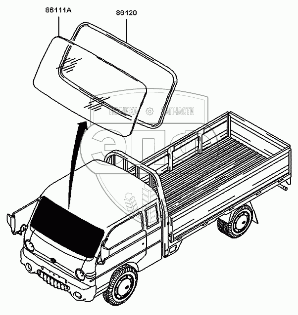 Каталог запасных частей к технике: Hyundai H100 Porter. Ветровое стекло