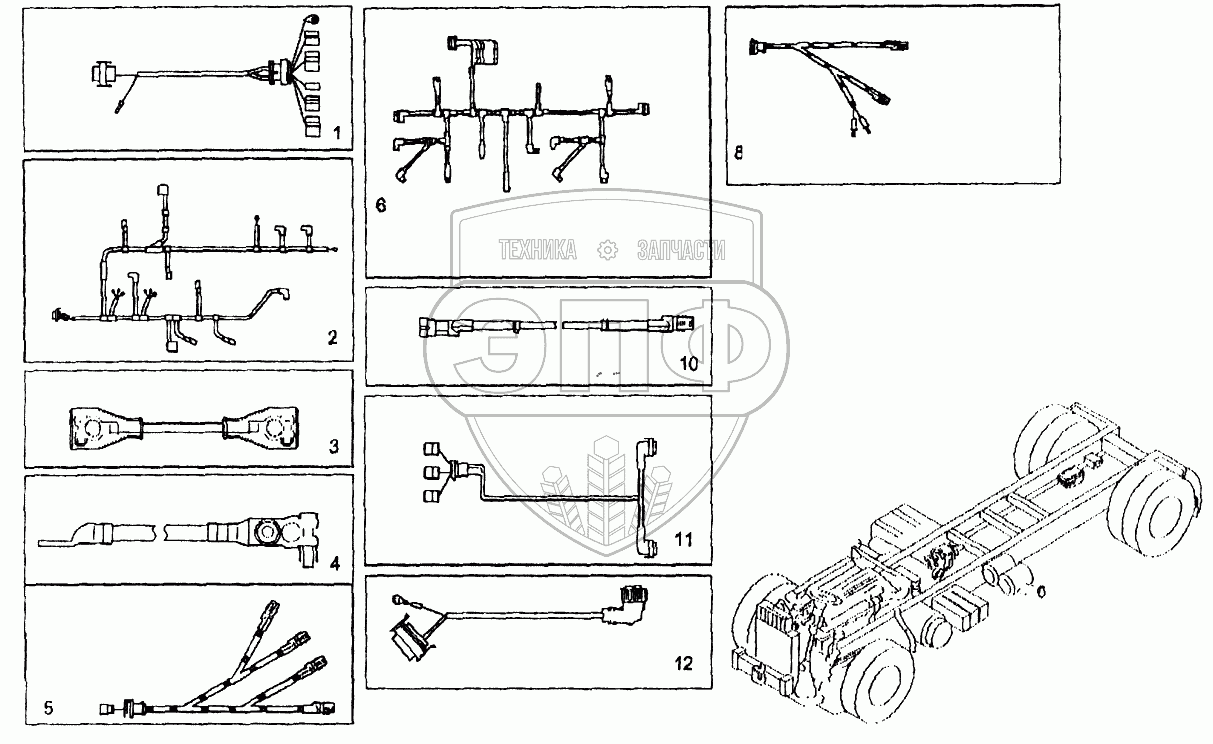 Каталог запасных частей к технике: IVECO EuroTech CURSOR. Электропроводка на раме