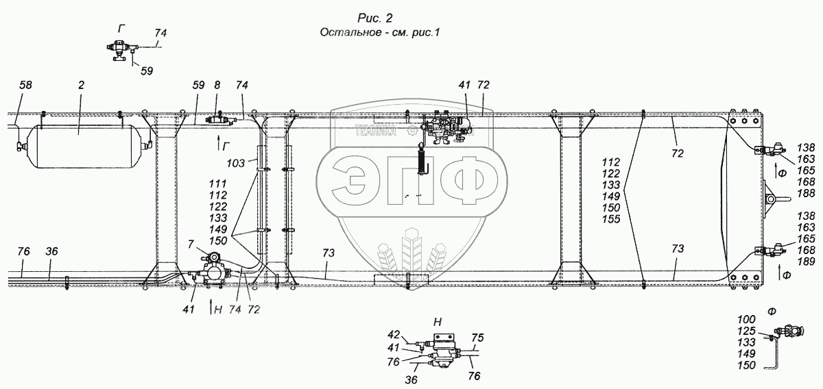 Каталог запасных частей к технике: Камский автозавод 4308. Установка пневмотормозов 4308-3500006