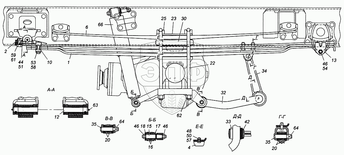 Каталог запасных частей к технике: Камский автозавод 4308. Установка задней подвески Э4308-2900002