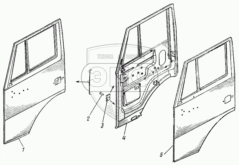 Каталог запасных частей к технике: Камский автозавод 43101. Дверь левая (сварка) 5320-6100015
