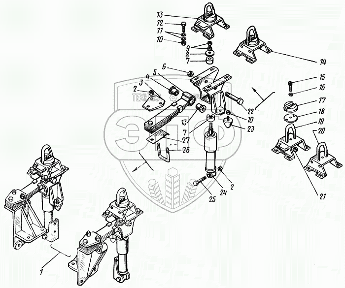 Каталог запасных частей к технике: Камский автозавод 43101. Подвеска задняя кабины 4310-5000005