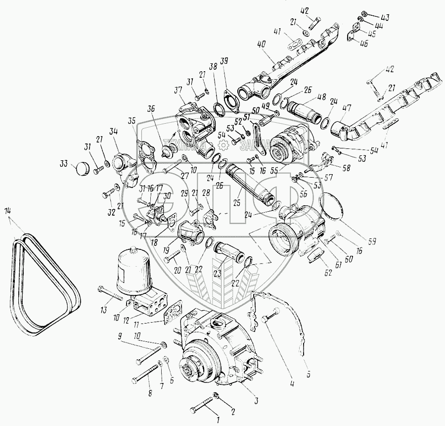 Каталог запасных частей к технике: Камский автозавод 43101. Система охлаждения двигателя