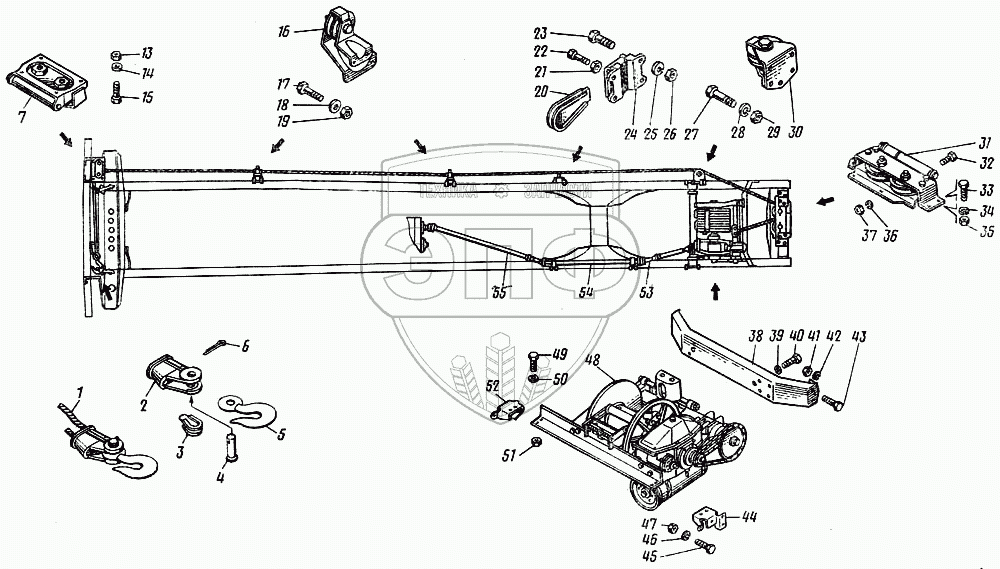 Каталог запасных частей к технике: Камский автозавод 43101. Установка лебедки