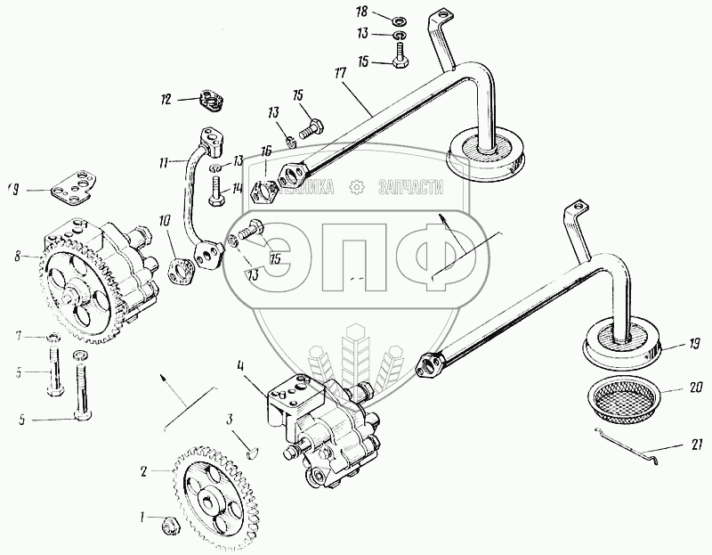 Каталог запасных частей к технике: Камский автозавод 43101. Установка насоса масляного